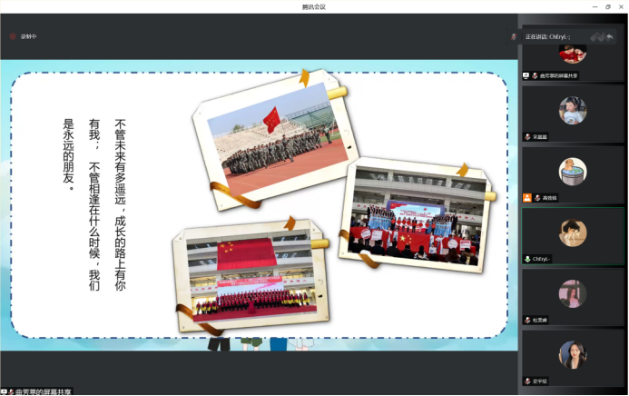 由于疫情的原因老师们无法用面对面的形式对同学们表达毕业的祝愿,英语和俄语老师们采用视频的形式寄予毕业生殷切的祝福,希望同学们能够在以后的生活中顶天,敢与高者攀;立地,敢与强者拼;树德,敢与速者竞!随后由付天乐带来歌曲《北京东路的日子》,表达了离别前对朋友老师的不舍,和对大学生活的怀念。小品《同样的我们》道出了我们无比珍惜的青春时光已经逝去,但未来漫漫征途等着我们的到来。