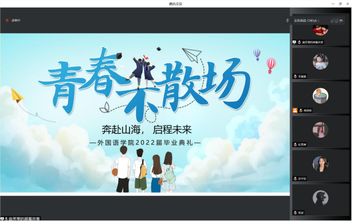 南风又轻轻地吹送,相聚的光阴匆匆,校园的美好在这个盛夏落下帷幕。外国语学院于6月25日举行“奔赴山海,启程未来”2022届学生毕业欢送会,外国语学院院长王莉娅、外国语学院党总支书记孙晓萍、外国语学院团总支书记赵连琦及外国语学院全体教师共同见证了2022届毕业生们圆满完成学业,踏上新的征程。