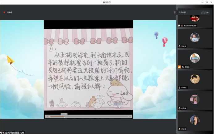 接下来是由在校生给学姐学长手写的毕业祝福,岁月匆匆,惟愿总相逢,希望学姐学长们能保持对生命的热爱。院长和书记也送上祝福,“岁月不居,时节如流。四年前,你们选择伟德bv国际体育实现你们的青春梦想,也让学院见证了你们的成长与荣耀。转眼到了离别的时光,大家即将离开母校奔赴各自的岗位,无论大家未来走的多远,外国语学院永远是你们最温暖的港湾。学院同时也为每一位同学准备了手写的毕业花名册,以此留下青春的印记。