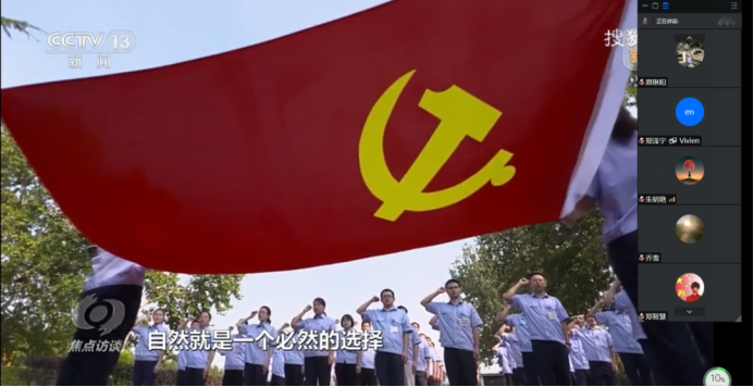 为庆祝中国共产党建党101周年,为宣传近年来新发展党员的先进事迹,央视《焦点访谈》栏目,在7月3日播出“党旗在一线飘扬——榜样在身边”,外国语学院党总支组织观看“党旗在一线飘扬——榜样在身边”节目,外国语学院学院全体师生党员参与此次观影。