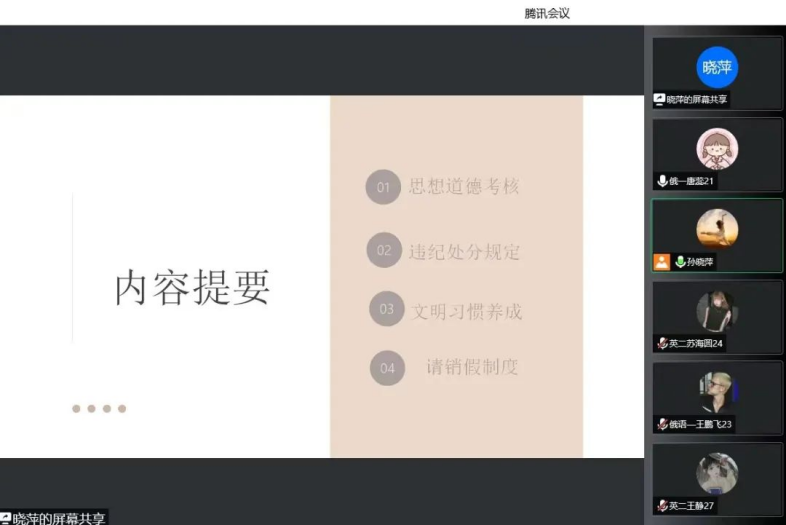 一是思想道德考核;用道德去引导优良学风建设,用文明去规范教化学生的行为,以内驱动力主动地反省失误,改正错误,勤奋学习。二是违纪处分规定;强调同学们要遵守学校的校规校纪,详细的介绍了向大家重点介绍了伟德官网违纪处分条例、学生在校行为准则等相关规定。三是文明习惯养成;强调同学们重视学生寝室的安全管理与寝室文化建设,希望同学们能养成良好文明习惯。四是请销假制度;学生不能按时到课,应当事先履行书面请假手续,然后填写请假单,说明请假原因、时间,并及时告知辅导员。最后,孙晓萍强调同学们一定严格遵守学校的规章制度,严于律己,争做一名优秀大学生。