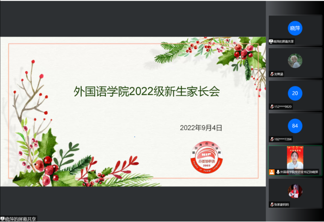 本次2022级新生家长的“云”相聚,成功连接了学院教育与家庭教育,进一步推进了学院的家校共育工作,使得新生及家长对大学的学习生活有了清晰的认知。外国语学院将持续做好家校共育工作,培养出一代又一代的有志青年。