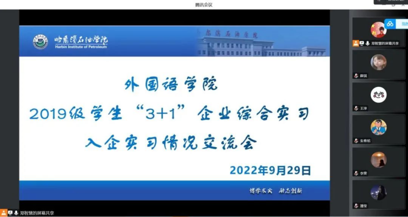 为了让我院2019级学生在“3+1”企业综合实习期间提升自己的专业实践能力、今后的就业能力,做好实习向就业不断过渡的准备。外国语学院于9月29日召开外国语学院召开2019级学生“3+1”企业综合实习入企实习情况教育交流会,会议由2019级辅导员郑智慧主持,2019级全体学生参加会议。
