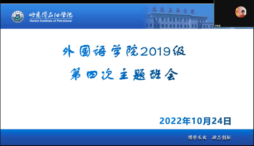 为进一步推进我院2019级学生的实习就业工作,使同学们能够尽快适应生活与就业,加强对实习生就业的指导,提升我院实习生的就业意识。10月24日,外国语学院召开2019级第四次主题班会,会议由辅导员郑智慧主持。