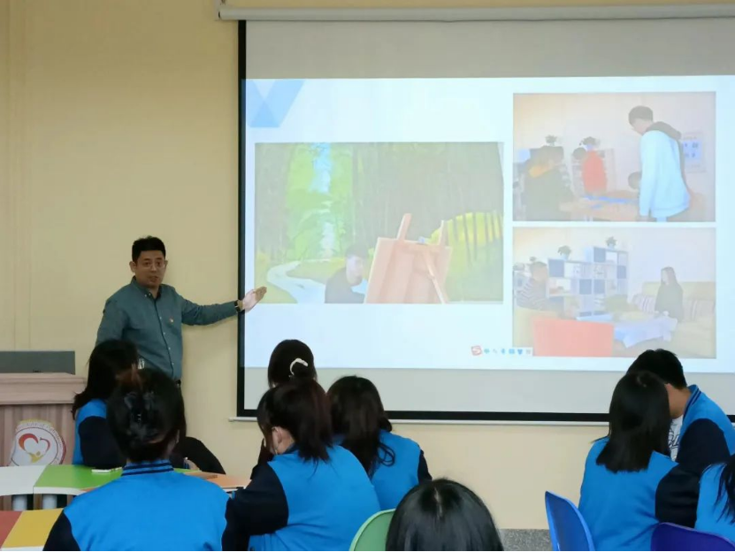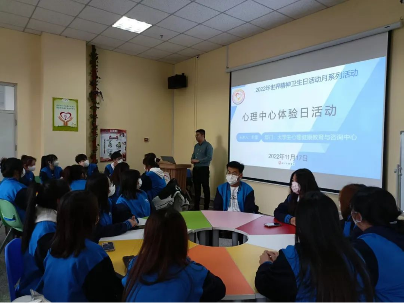 活动伊始,彭雷主任通过PPT向大家展示了心理教育举办的各种活动,介绍了心理咨询室的整体概况、功能室、预约方式等,让同学们对心理健康中心有了初步的印象。