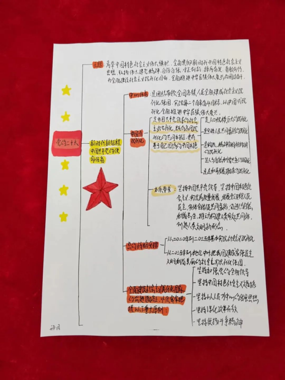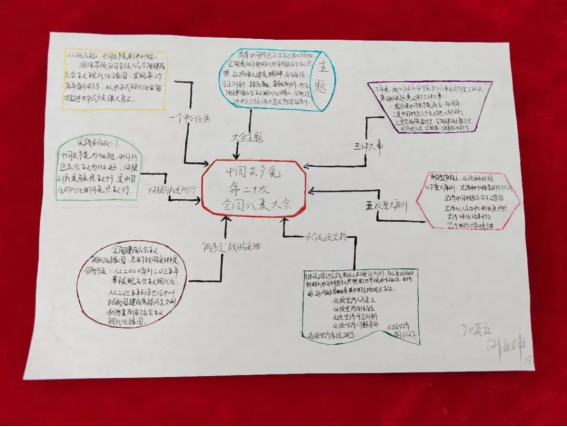 我院学生党员认真学习党的二十大报告,积极参与投稿,精心绘制思维导图。与常见的文字报告相比,思维导图能更直观地展现思维过程,加深对党的二十大精神的感悟,进而确保同学们看得懂、记得住,让党的二十大报告学习深入人心。