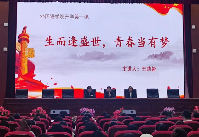 为引导学生坚定奋斗目标,科学规划校园学习和生活,以饱满的精神姿态喜迎新学期,奋进新征程,3月14日外国语学院院长王莉娅教授以“生而逢盛世,青春当有梦”为题,为同学们讲授“开学第一课”。外国语学院全体师生聆听了报告。