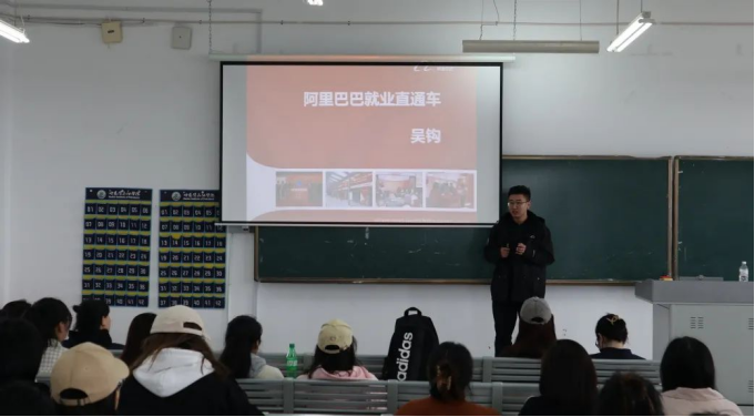 会议伊始,公司负责人介绍了公司的地理位置、公司实景、主要项目、职位构成、办公室环境、薪资待遇等,描述了阿里巴巴的构成及股份分布。其中特别介绍了外贸业务员的岗位,并表示阿里巴巴在各个城市也会展开城市“双选会”,让外国语学院的学生可以实现对口实习,并可以对员工进行岗前培训,从而实现高水平能力,高质量就业。最后同学们现场根据工作岗位选择笔试题目进行答题后进行面试复试。