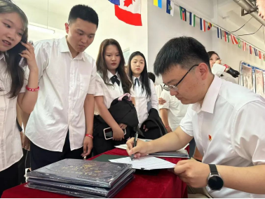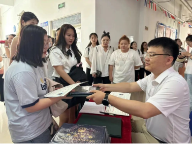 然后学院向毕业生赠送定制纪念手环,每个手环中都饱含着学院对毕业生不忘母校、志存高远的殷切期望。