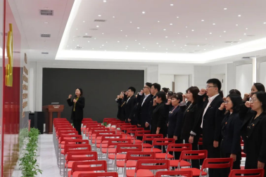 在参观主题教室后,全体党员面向党旗庄严宣誓,重温入党誓词。铿锵的言声震撼着在场的每一位党员,丹心闪耀,彰显对党的忠诚,对人民的忠诚。