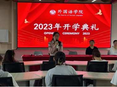 开学典礼已经吹响了新学期奋进的号角,面对未来,希望2023级新同学们能够坚持学业至上、追求卓越、持之以恒、不断创新,以永不懈怠的精神状态坚守如磐初心,以一往无前的奋斗姿态担当崇高使命。愿同学们在外国语学院的舞台上展示自我,在美好的大学生活中绽放光彩,在人生的新航程上乘风破浪,奋勇前行!
