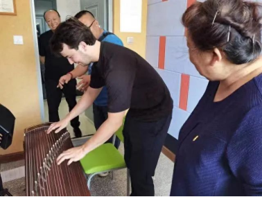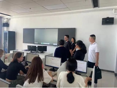 在艺术与教育学院领导的陪同下Rok一行人参观了琴房、教室、演播室等教学场所,对学院的教学设施表示高度赞扬。接下来Rok来到了外国语学院,参观了学院的走廊文化墙,走访了教室,在会议室里同学院领导热情交流。