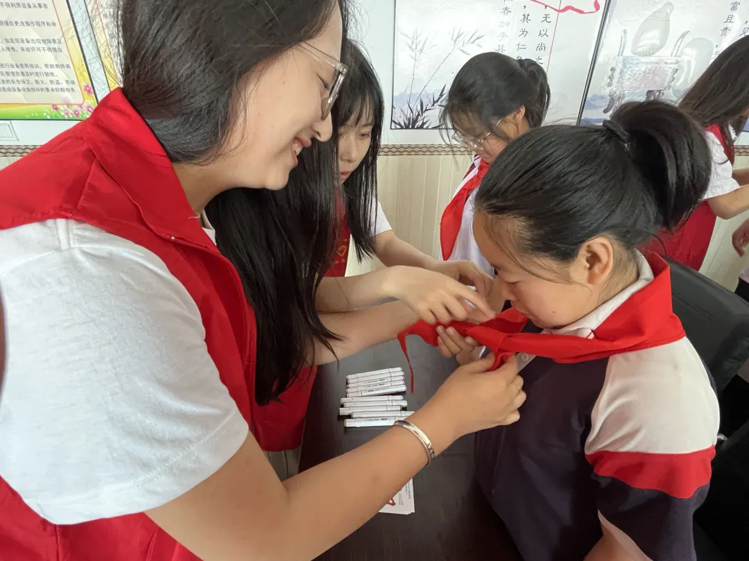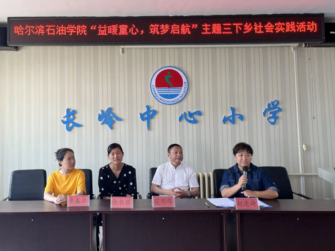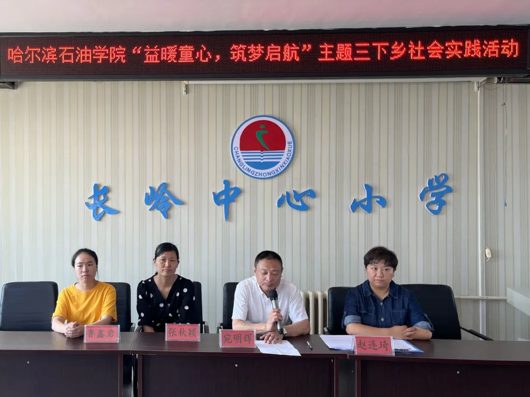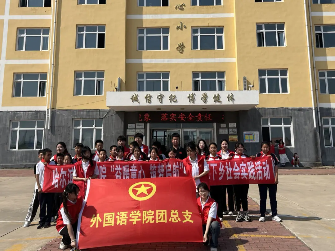 为深入学习贯彻习近平新时代中国特色社会主义思想和党的二十大精神,学习宣传贯彻习近平文化思想、习近平总书记五四青年节对全国广大青年寄语精神,引导和帮助青年学生在社会课堂中受教育、长才干、作贡献,争做有理想、敢担当、能吃苦、肯奋斗的新时代好青年,外国语学院学生党支部、外国语学院团总支、外国语学院青年志愿者协会以及外国语学院团总支书记赵连琦、教师代表张秋颖、鲁鑫岩老师,于2024年6月28日,携手走进长岭中心小学,开展了主题为“益暖童心,筑梦启航”的三下乡社会实践活动。