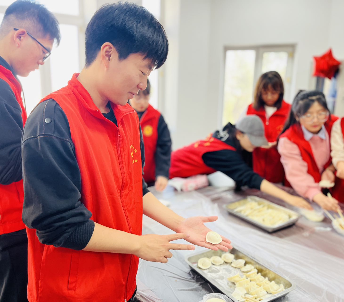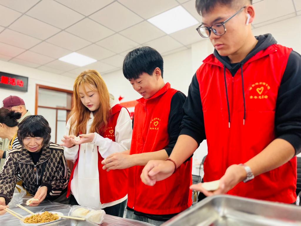 经前期与社区方面沟通,此次活动将为在社区居住的长辈们包饺子,以一种“热气腾腾”的方式陪伴他们度过一个难忘的节日。活动中,青年志愿者们充分践行“奉献、友爱、互助、进步”的志愿服务精神。他们面带微笑,忙碌地穿梭在各个角落。有的熟练地擀皮、包馅儿,为老人精心制作美味的饺子;有的则认真地打扫卫生,让老人们的居住环境焕然一新;还有的围坐在老人身旁,带着节日的问候以及真切的关怀,与老人们唠家常、问冷暖。他们耐心地倾听老人们讲述过去的故事,分享生活中的喜怒哀乐。那温馨的画面,仿佛冬日里的暖阳,温暖着每一个人的心。