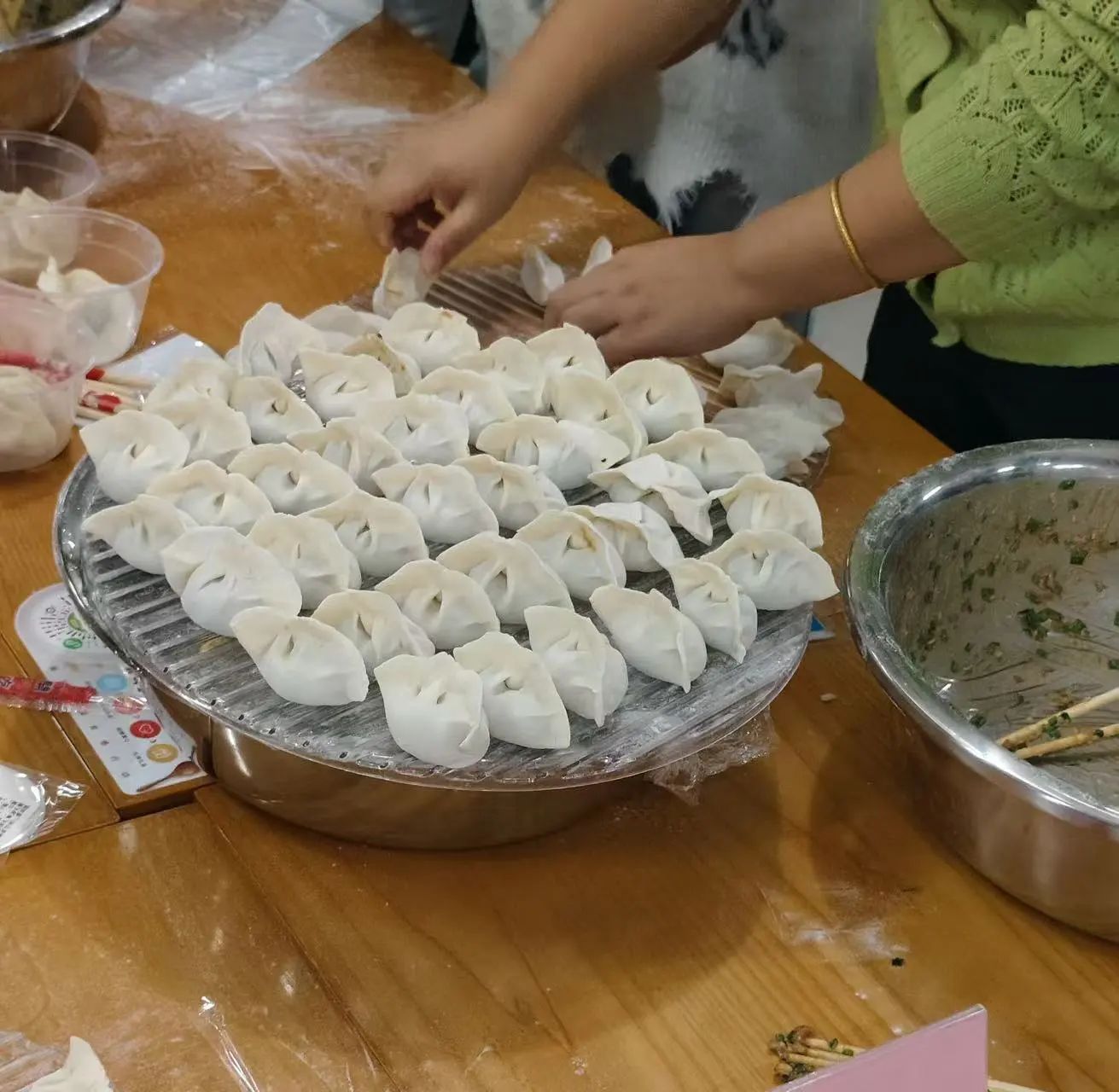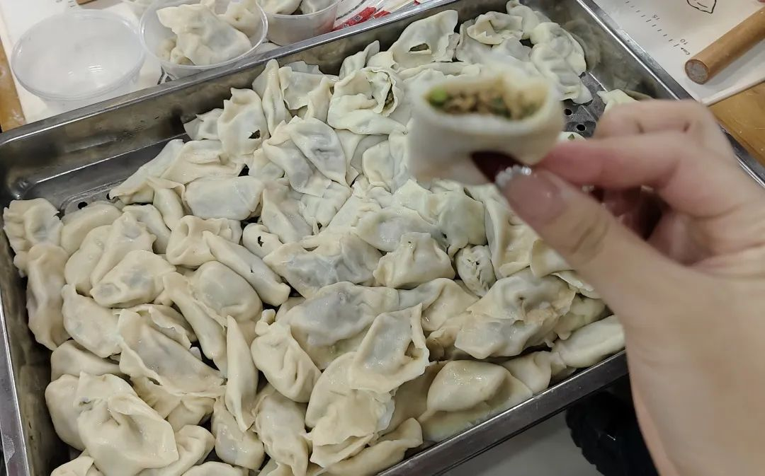 活动现场,欢声笑语,热闹非凡。校领导们来到各学院师生中间与大家一起捋起袖子,洗手备料,加入到包饺子的“战斗”中。虽然大家手法有生有熟,包出的饺子也形状各异,但每一个饺子都蕴含着独特的心意。大家一边包着饺子,一边分享着家乡冬至的习俗,交流着学习与生活中的点滴趣事,现场气氛温馨而热烈。