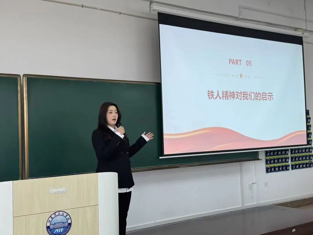 比赛现场,2022 - 2024级参赛选手们依照抽签顺序依次登台,单人演讲控制在8分钟左右。选手们着装整齐,神情专注,依据赛前深入挖掘的真实铁人事迹侃侃而谈,从铁人在艰苦环境下的拼搏,到日常默默奉献的坚守,内容详实。配合制作精良的PPT,图文、音效与讲述精准同步,台下观众听得入神,响起认可的掌声。同时,郑智慧老师从各个维度打分,并且对此次比赛做出了总结,分析了此次比赛的意义。