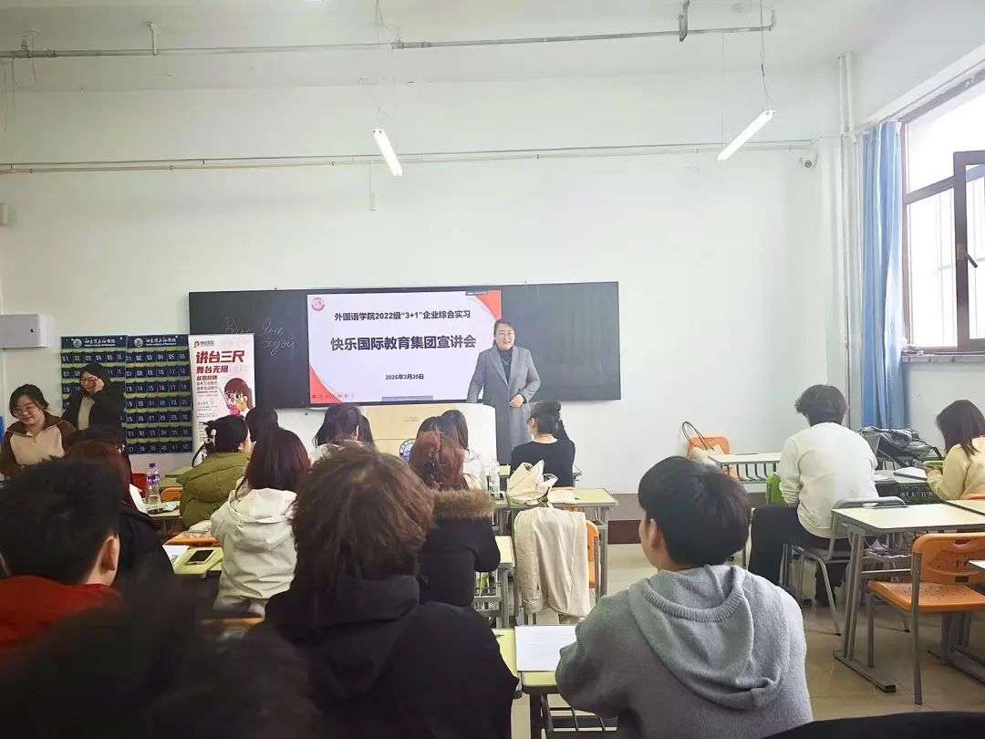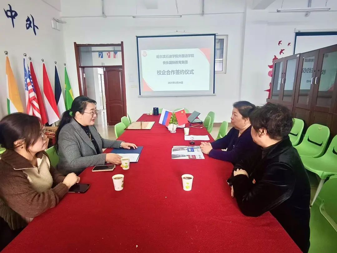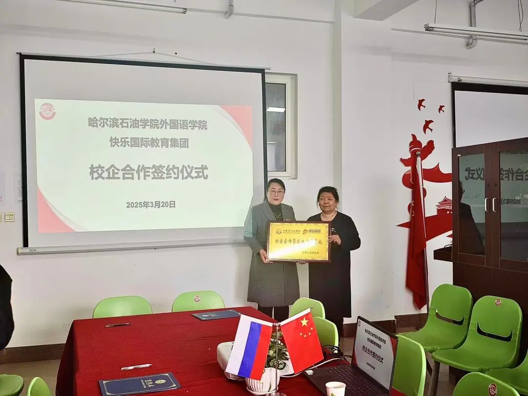 随后,双方正式签订了校企合作协议,并举行了实习基地挂牌仪式。签约仪式结束后,快乐国际教育集团还为俄语专业学生进行了企业宣讲,详细介绍了企业的文化、发展前景以及实习岗位的具体要求。