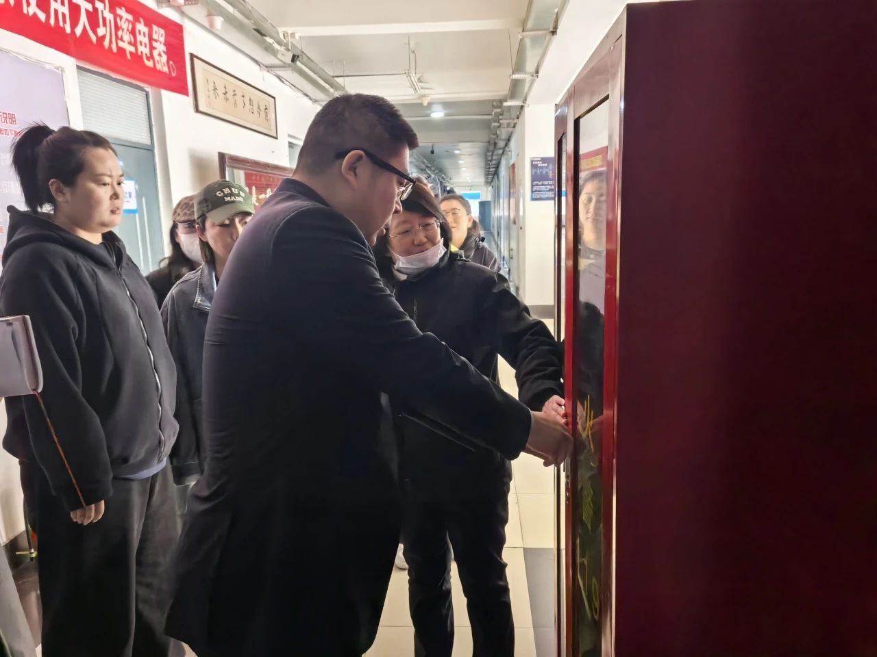 检查组一行先后深入四公寓、五男公寓,对灭火器、消防栓、安全出口等消防设施的配备及有效情况进行逐一核验,现场检查了安全出口指示灯、应急照明灯的运行状态,确保消防通道畅通无阻、标识清晰无遮挡。针对寝室内部,检查组重点检查了私拉乱接电线、违规使用大功率电器、易燃易爆物品存放等问题,同时提示学生做好假期离校前的断电、门窗关闭等安全措施。在检查过程中,检查组对发现的个别问题进行了现场记录,并反馈给相关部门。