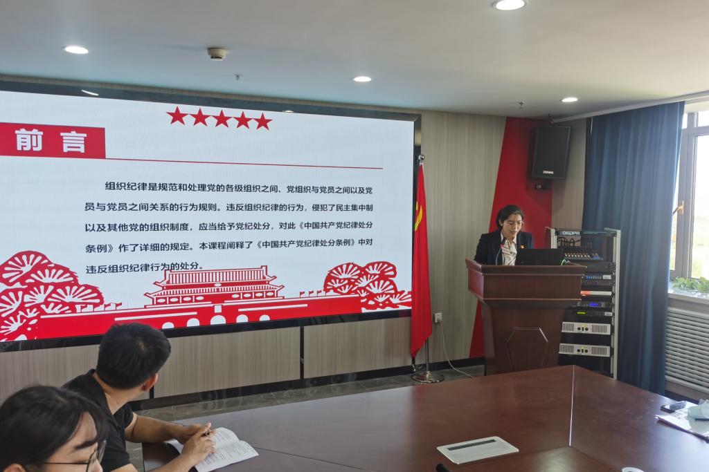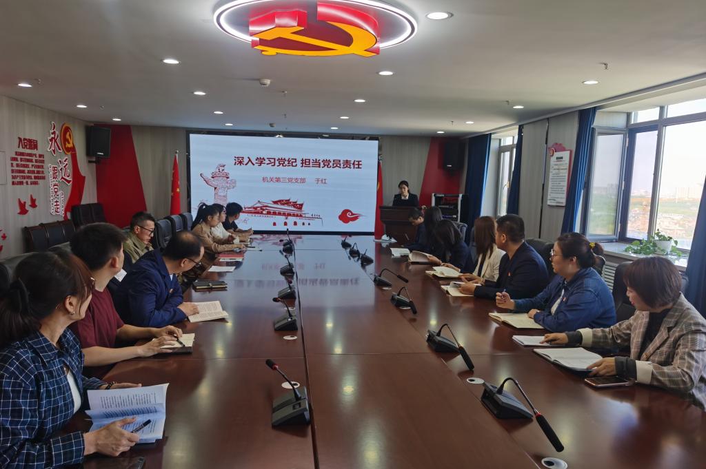 为深入学习贯彻《中国共产党纪律处分条例》,使党员同志们对党的纪律有更深刻的认识和理解。5月17日上午,机关第三党支部书记于红在校党员之家以《深入学习党纪,担当党员责任》为题,向支部党员干部讲授党纪学习教育专题党课。