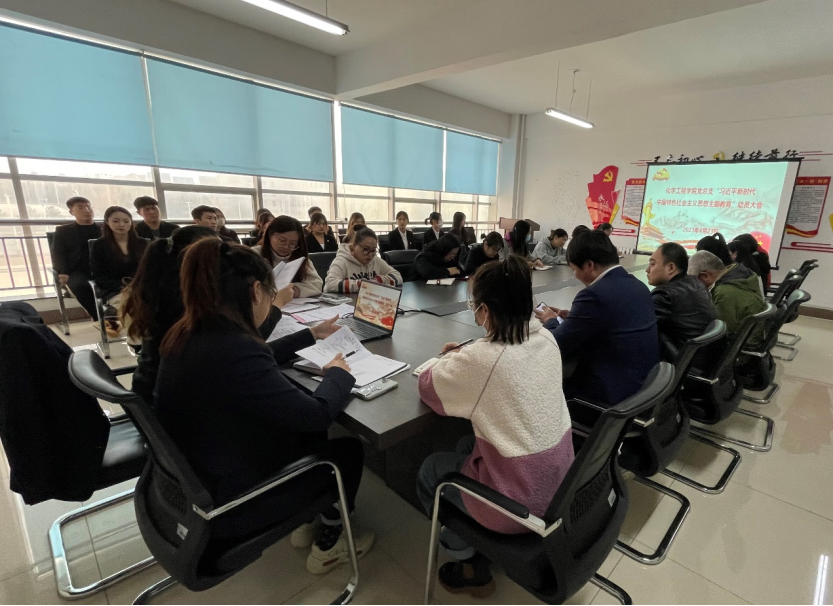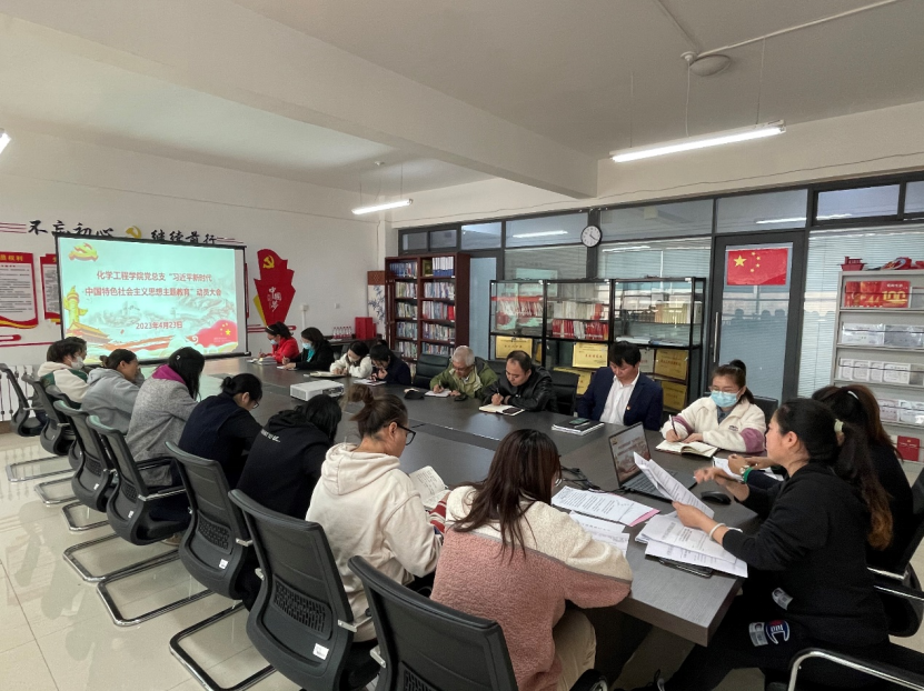 为贯彻落实党中央、教育部党组以及省委关于深入开展学习贯彻习近平新时代中国特色社会主义思想主题教育的重要部署,深刻认识主题教育的重大意义,扎实推进主题教育营造良好氛围。2023年4月23日,化学工程学院党总支于第二教学楼党员之家组织召开学习贯彻习近平新时代中国特色社会主义思想主题教育动员大会,会议由党总支书记张艳丛主持,党总支委员、教工党支部委员、学生党支部委员及学院全体师生党员参与学习。