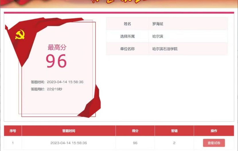 国家安全,你我同行。为切实增强全民国家安全意识和素养,深入贯彻落实总体国家安全观,提升学院师生党员对国家安全法律知识的理解与认识,2023年4月14日,化学工程学院党总支组织师生党员参加国家安全知识网上答题。