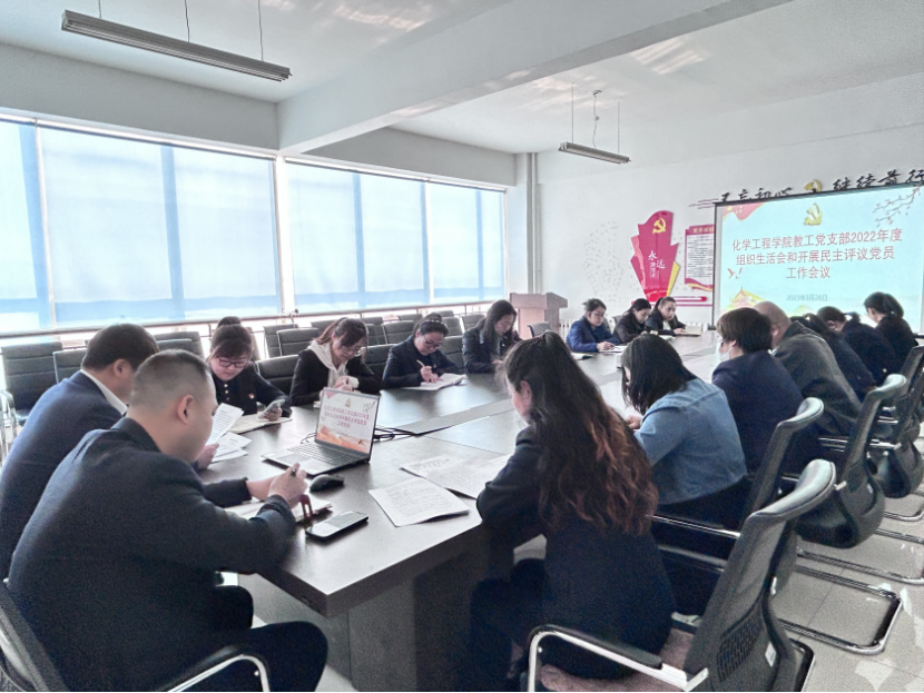 根据《中共黑龙江省委组织部关于转发<中共中央组织部关于召开2022年度基层党组织组织生活会和开展民主评议党员的通知>的通知》(黑组通字〔2023〕1号)要求,按照学校党委工作安排,3月28日,化学工程学院教工党支部在党员之家组织召开2022年度组织生活会和民主评议党员大会。会议由党支部书记彭殿宝主持,支部全体党员同志参加。党总支书记张艳丛,院长、总支副书记杨昕,党总支副书记赵婧作为普通党员参加会议。