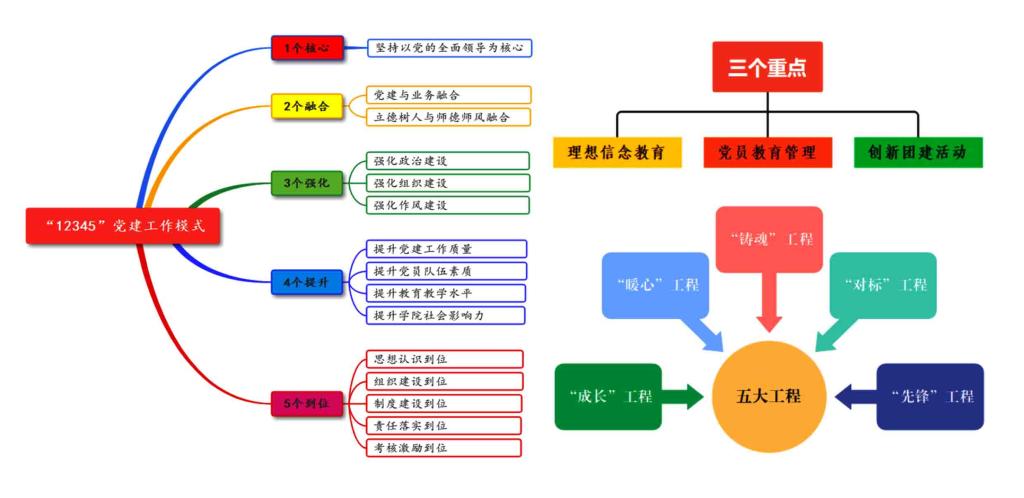 经济管理学院党总支坚持“党建引领,融合共进”的核心理念,创新党建工作模式,打造学院党建品牌,推行“12345”党建工作模式,确保党务工作标准化、党员管理制度化、宣传教育阵地化、党建工作高效化。以党建为战略引领,为学院人才培养、教学科研、社会服务等核心业务高质量发展提供坚实的政治保障与组织支撑。通过紧抓“理想信念教育”“党员教育管理”“党建带团建活动”三个重点,推动“铸魂工程”“对标工程”“先锋工程”“成长工程”“暖心工程”五大工程,聚焦资源整合,打造服务地方产业发展需求的功能性党组织。学院构建“团队化运行、矩阵式管理”的组织构架和管理模式,将党建工作成果转化为业务发展的动力,推动学院各项事业不断取得新进展。