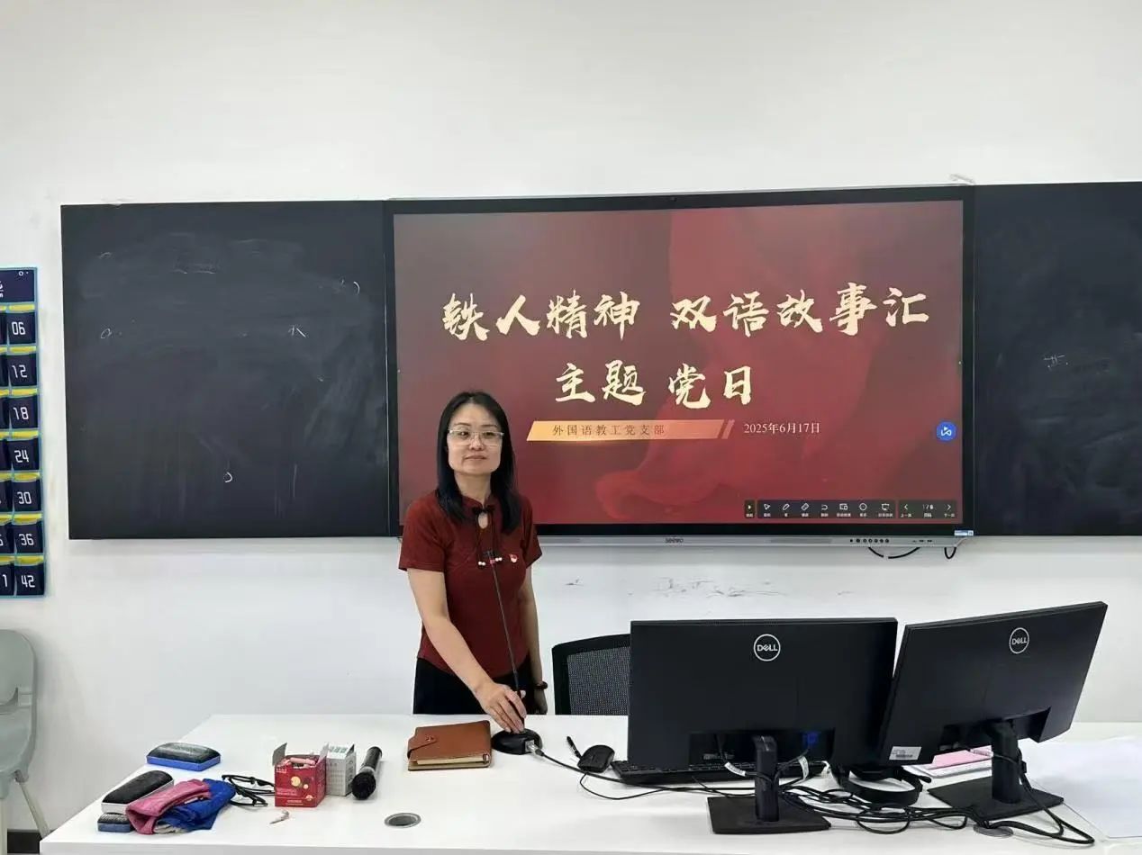2023年6月17日下午,外国语学院教工党支部在710举办了一场别开生面的主题党日活动——"铁人精神双语故事汇"。活动由支部组织委员郭潇琪老师主持,全体党员教师以英语、俄语双语讲述红色故事,将党史学习教育与专业特色深度融合,展现新时代党员教师的使命担当。