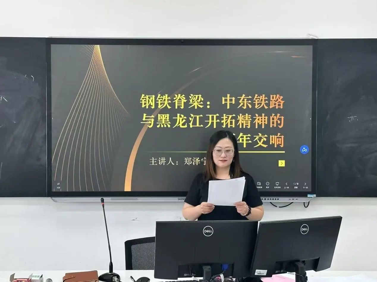 郑泽宁老师以《钢铁脊梁:中东铁路与黑龙江开拓精神的百年交响》为题,通过中英双语梳理中东铁路建设史,阐释"开拓进取"精神对当代发展的启示。