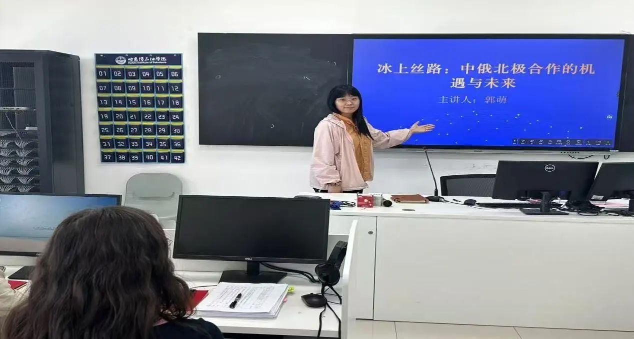 郭萌老师围绕《冰上丝路:中俄北极合作的机遇与未来》,结合中俄双语文献资料,分析北极航道开发对黑龙江对外开放的战略意义。