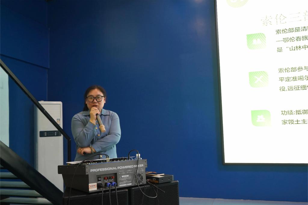 讲座中,刘迎新女士生动讲述了大兴安岭的壮丽风光、松花江畔的悠悠历史,以及黑龙江这片热土上孕育出的丰富文化艺术。她通过生动的语言和丰富的图片资料,将黑龙江的自然之美、人文之韵展现得淋漓尽致,让在场的师生们仿佛置身于这片神奇的土地之上。她还分享了黑龙江非遗文化保护和传承的现状与挑战,鼓励师生们积极参与非遗文化的保护与传承工作,为弘扬黑龙江地域文化贡献自己的力量。