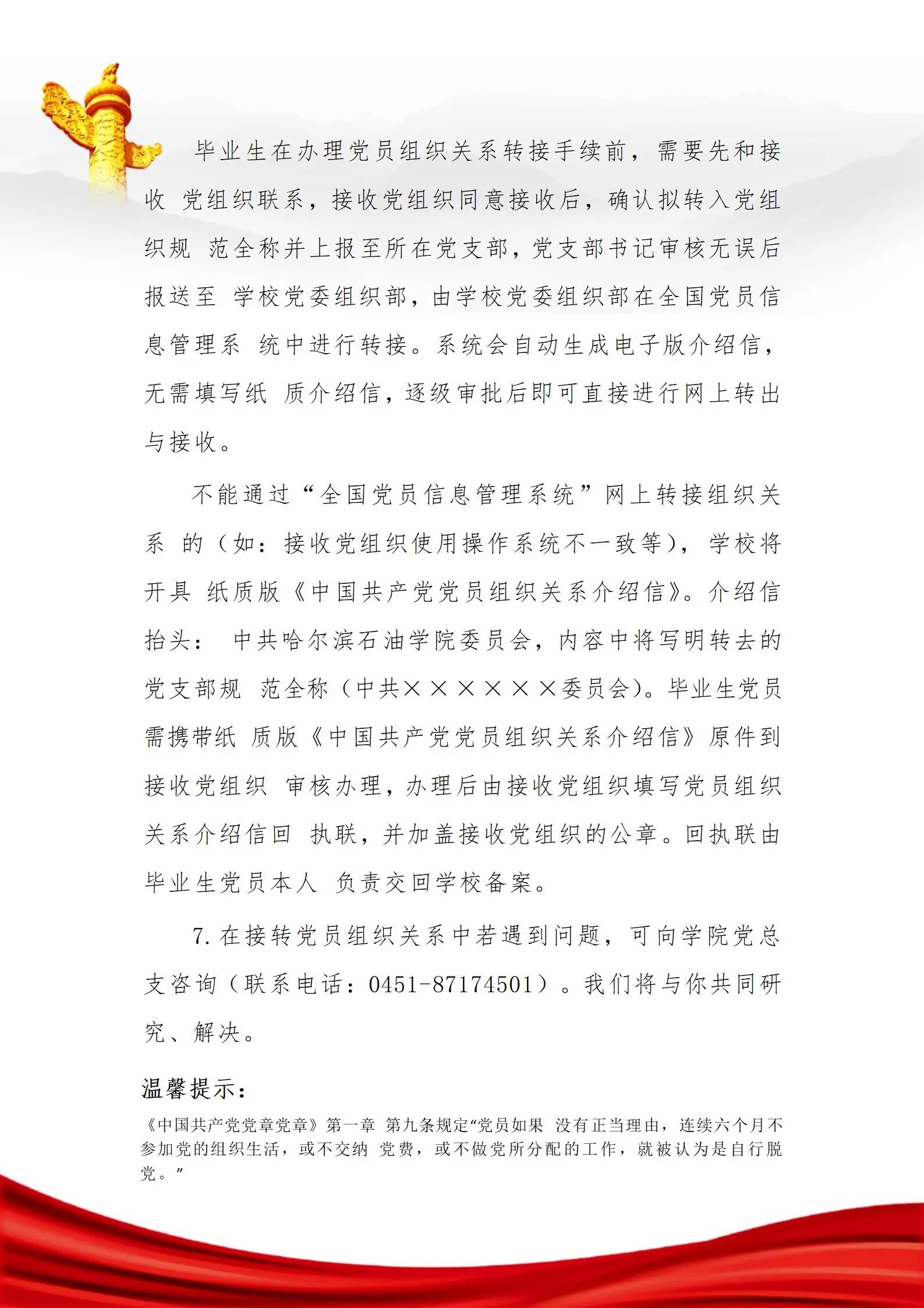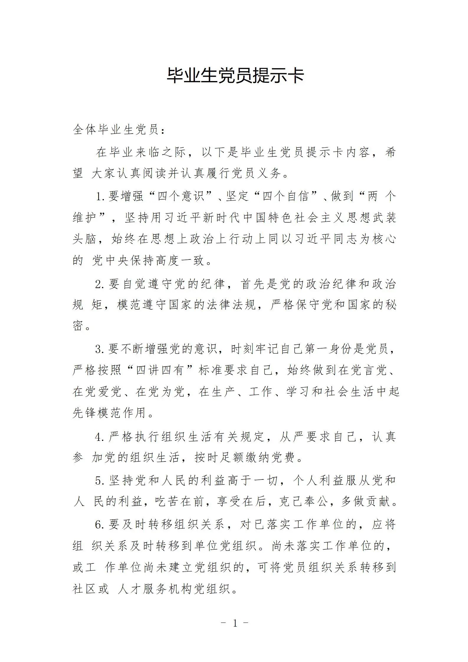 为做好2025届毕业生党员离校前的教育工作,艺术与教育学院学生党支部严格按照校党委相关要求,向我院全体毕业生党员发放“毕业生党员提示卡”。通过发放提示卡,希望各位毕业生党员进一步强化党员身份意识,明确应履行的义务,明晰组织关系转接流程,确保每一位毕业生离校后都能按规定纳入所属党组织继续进行教育管理工作。在自己的工作岗位上继续保持党员的先进性,发挥党员的模范带头作用和榜样作用。