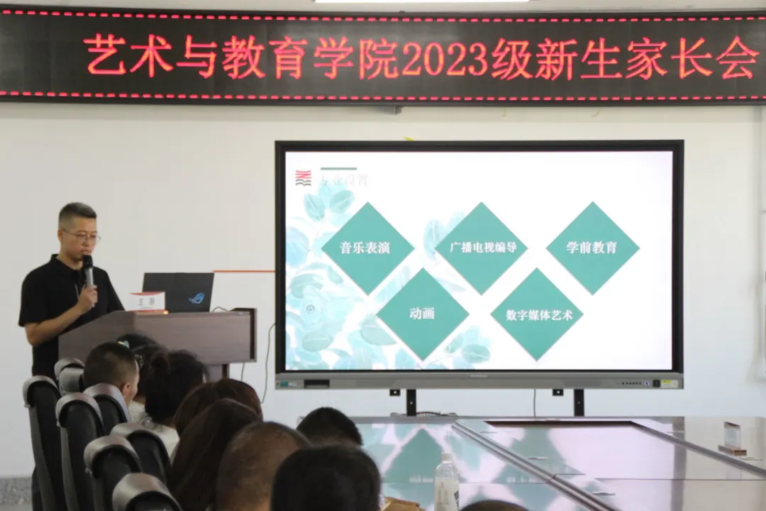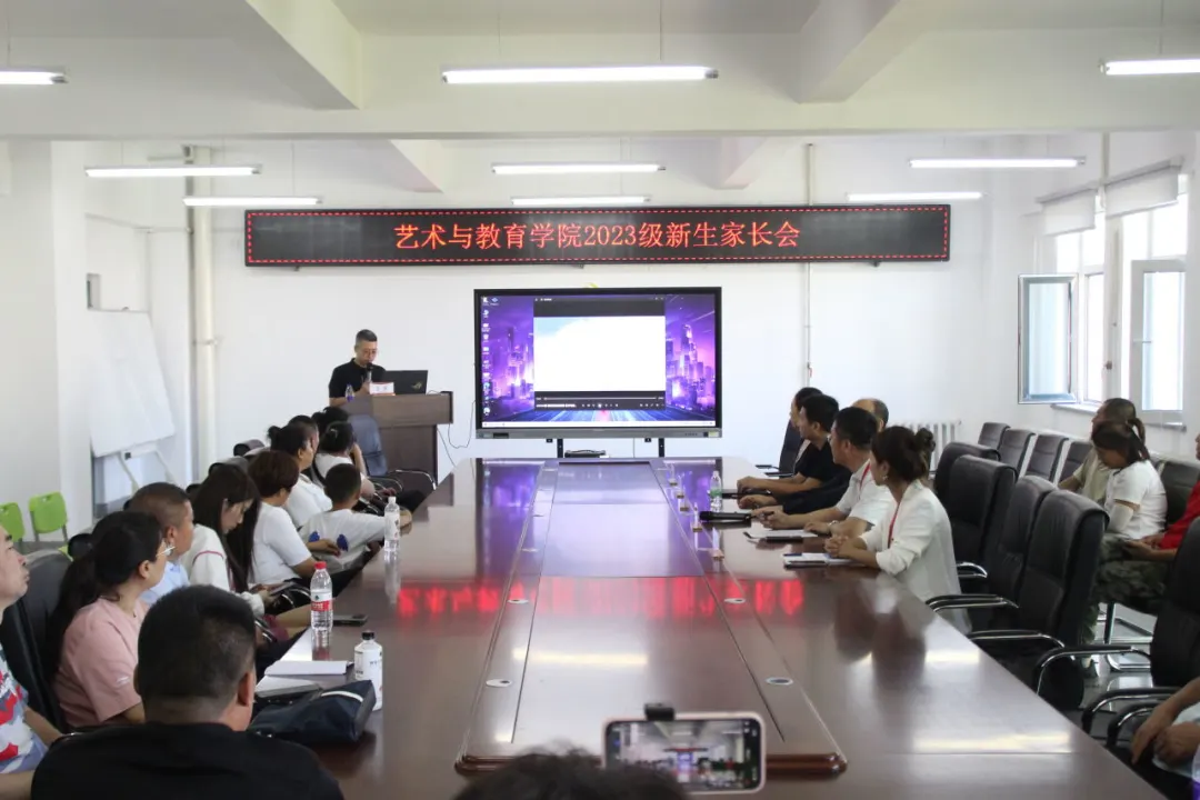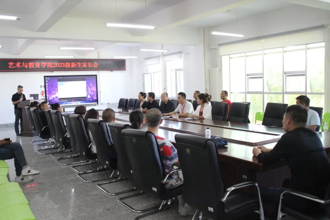 为增强学生家长对我院的了解,帮助学生更快适应大学生活,建立家校联系,做好家校协同育人工作,艺术与教育学院学院于9月2日线上线下同步召开2023级本科新生家长会。艺术与教育学院院长王伟建、党总支书记刘强、副院长王原、副院长乜艳华、副院长刘锡洋、党总支副书记王昱及2023级新生家长参会。本次会议由副院长王原主持。