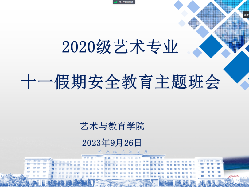 十一假期将至,为保证我院学子的安全问题,进一步加强同学们的假期安全防范意识,提高安全防范能力,保障假期出行安全,艺术与教育学院各年级辅导员于2023年9月27日组织召开安全主题教育班会,班会由各年级辅导员主持,我院全体学生参加。