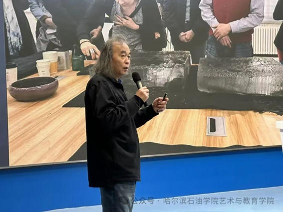 讲座邀请了中国冰版画创始人、黑龙江省画院冰版画院院长、哈尔滨市“冰雪艺术大师”、黑龙江东方学院艺术设计学院朱晓东教授作为主讲嘉宾。朱晓东教授以其深厚的艺术造诣和丰富的实践经验,为大家带来了一场别开生面的冰雪艺术盛宴。他详细介绍了冰版画的制作工艺、艺术特点和审美价值,并通过生动的案例和精美的作品展示,让在场的师生们深刻感受到了冰版画的独特魅力。