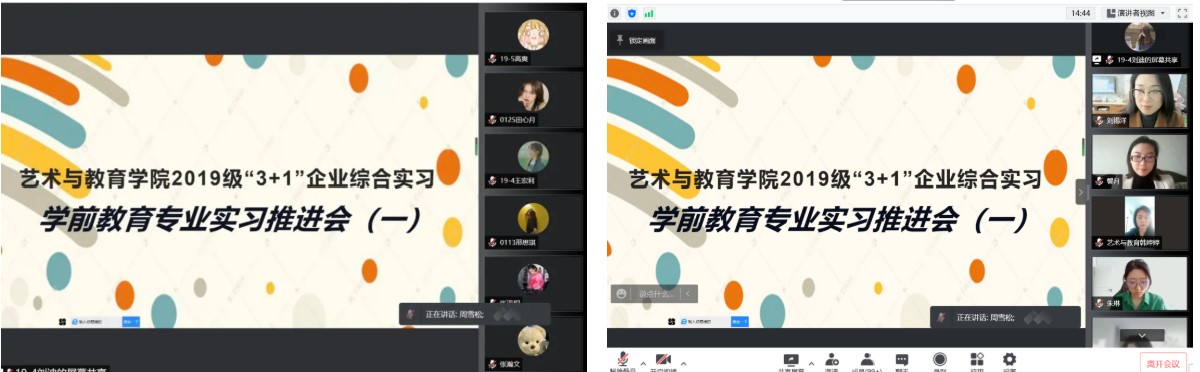 为全面做好2019级学生“3+1”企业综合实习工作,让学生明确实习的目的、意义和要求,帮助学生树立正确的就业观和安全意识,艺术与教育学院学前教育专业于2022年4月17日召开了2019级“3+1”企业实习推进会。学前教育专业系主任高馨月、院长助理刘锡洋、2019级辅导员周雪松,以及2019级全体师生参加此次会议。