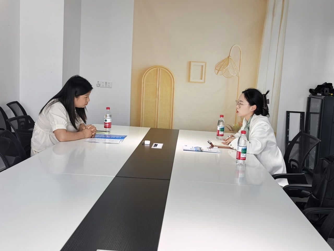 在走访过程中,各企业负责人详细介绍了公司的发展历程、教育理念及人才需求情况。呦啊蒙特梭利托育有限公司强调其“以儿童为中心”的蒙氏教育模式,爱秀云教育科技则展示了其数字化教育的创新成果,而蛟滩启蒙幼儿园则分享了其在幼儿综合素质培养方面的实践经验。辅导员向企业介绍了学院的专业设置、学生培养方向及毕业生就业情况,并就薪资待遇、岗位要求、职业发展空间等学生关心的问题与企业进行了深入交流。