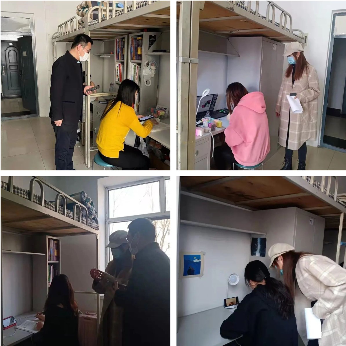 为持续做好学校静态化疫情防控管理要求,了解同学们思想动态,鼓励大家以更好的精神面貌投入到学习、生活中去,3月24日上午,我院党总支书记刘强、学团办公室主任王昱、2019级辅导员吴琦、2021级辅导员助理周铭,检查、走访了各年级已返校学生寝室。