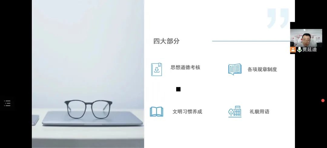 此次新生入学教育活动中,辅导员贾延迪带学生共同学习了《伟德bv国际体育学生手册》,着重讲解了思想道德考核评价办法、学生违纪处分规定、学生请假制度等内容,并解答了同学们的疑问,使学生更好地理解手册中的各项规定的具体要求,在思想上认识到了遵守校规校纪的重要性。同时,贾严迪对“垃圾下楼”、禁烟控烟、内务规范、礼貌用语等相关内容进行了着重强调,要求与会学生严格遵守规定,为今后的学习生活营造一个良好氛围。最后,贾延迪对同学们提出几点希望:一是希望广大学生严于律己,不要违反学校的各项校规校纪,做优秀的大学生。二是要遵守疫情防控相关规定和要求,为校园疫情防控工作贡献自己的一份力量。三是要合理规划时间,不断充实自己,迎接新的挑战。