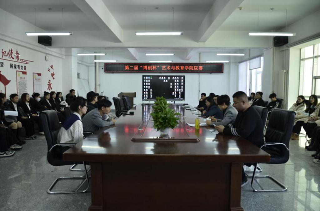 为培养我院学生创新意识,锻炼其创意思维,进一步提高大学生创新创业水平、动手能力和团队协作精神。我院于2023年11月10日在艺术楼415举办第二届“博创杯”院赛评审会。前期通过召开教师和学生动员会,我院学子积极踊跃报名参加,经过初步评审,共有25个项目进入答辩评审。本次评审会邀请我院党总支书记刘强、副院长王原、副院长刘锡洋、广播电视编导系主任孟令贤、实验中心主任张建明、动画教研室主任李懿人以及教师代表出席并担任本次赛事的评委,本次赛事由副院长刘锡洋主持。