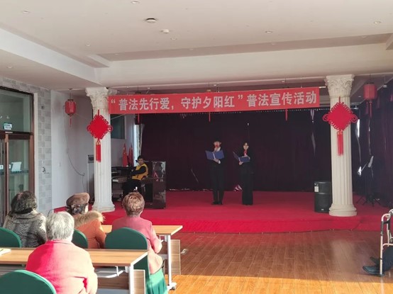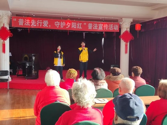 为进一步弘扬中华民族“尊老、敬老、爱老、助老”传统美德,切实增强老年人的法治观念,提升老年人自我保护意识,维护老年人的合法权益。2023年12月18日,艺术与教育学院青年志愿者协会赴哈尔滨市松北区中海江城社区百姓康年老年公寓开展“普法先行爱,守护夕阳红”普法宣传活动。我院2023级学生以团支部为单位参加此次社区志愿服务活动。