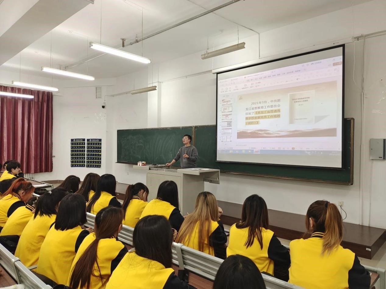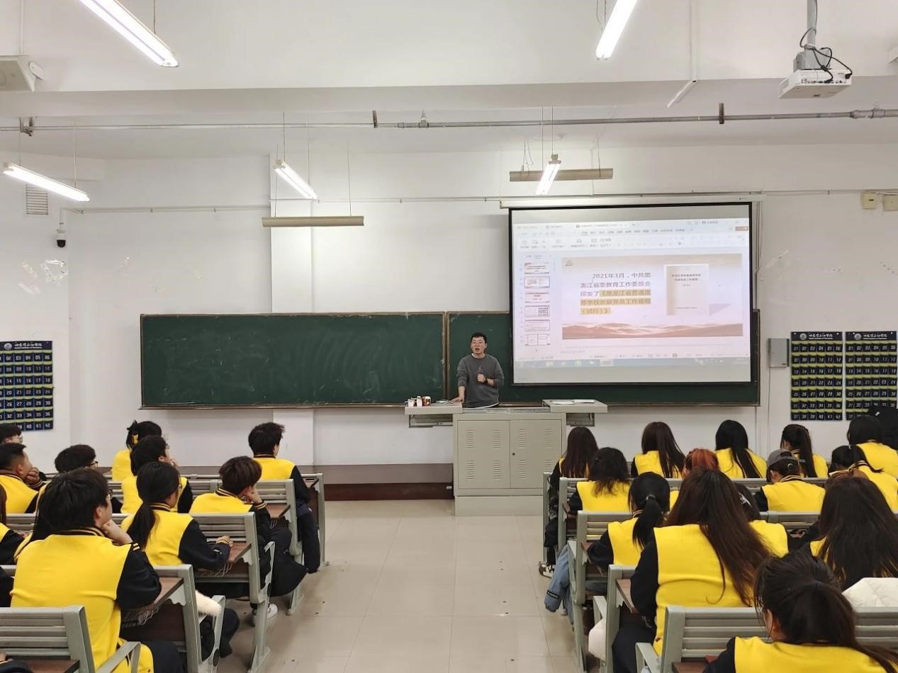 为做好2023级新生的思想政治引领,帮助我院新生端正入党动机,提升政治思想觉悟,积极向党组织靠拢,2023年12月13日,艺术与教育学院于第一教学楼304组织开展新生入党启蒙教育活动,本次活动由艺术与教育学院学生党支部书记贾延迪主讲,我院2023级全体学生参加。