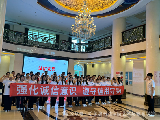 为培育青年诚实守信的优良美德,强化青年以德立身、诚实守信的观念,提升青年的道德素养,营造“人人知诚信、处处讲诚信”的积极健康且和谐的文化氛围,艺术与教育学院于6月14日在艺术楼举行“强化诚信意识,遵守信用守则”主题活动。