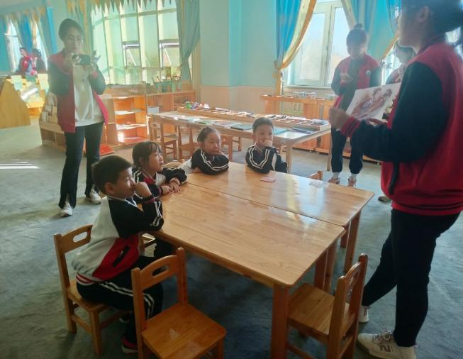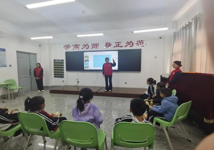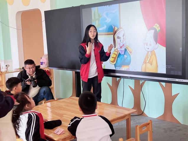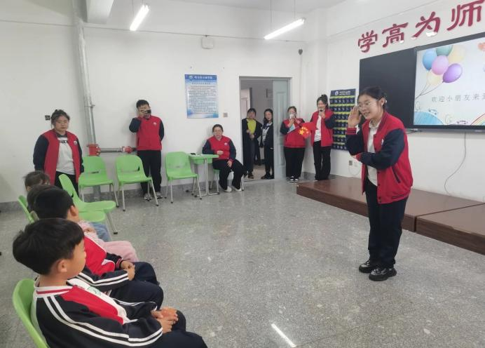 讲中华传统美德故事组成员在孙慧芯老师和盖广燕老师的带领下,由2021级小老师们为小学生们讲述中华传统小故事,帮助小学生们了解我国优秀的传统故事,树立起爱国情。