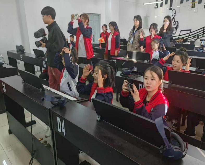 打击乐活动组在李嘉亮和张琦老师的带领下,由2021级小老师们教授小学生们用打击乐器跟随音乐进行演奏,充分激发了小学生们的音乐兴趣。