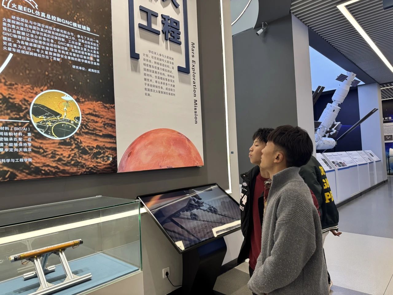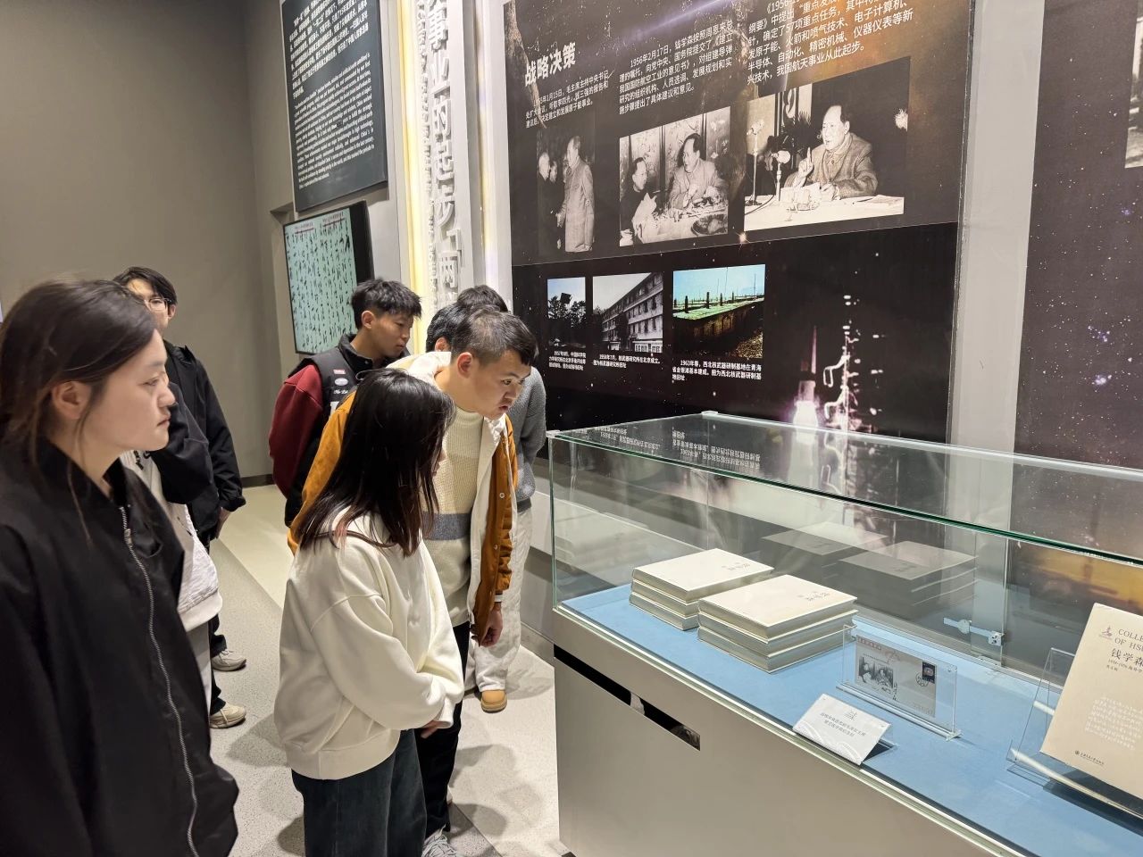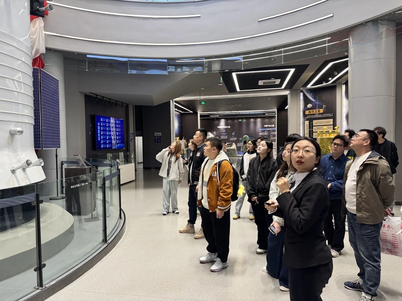 在参观过程中,工作室成员与同学们并肩同行,展开了热烈而深入的交流互动。老师们以航天伟人的光辉事迹为生动教材,鼓励同学们以这些时代先锋为榜样,学习他们勇于探索未知领域的无畏勇气、敢于突破传统思维的创新精神以及无私奉献国家航天事业的高尚情怀。同学们怀着对航天科技的浓厚兴趣和对航天精神的崇高敬意,认真聆听讲解员的细致讲解,目光紧紧追随着每一件展品,不时驻足仔细观察,积极踊跃地提出问题,与讲解员和老师们展开了一场思想碰撞的互动探讨。