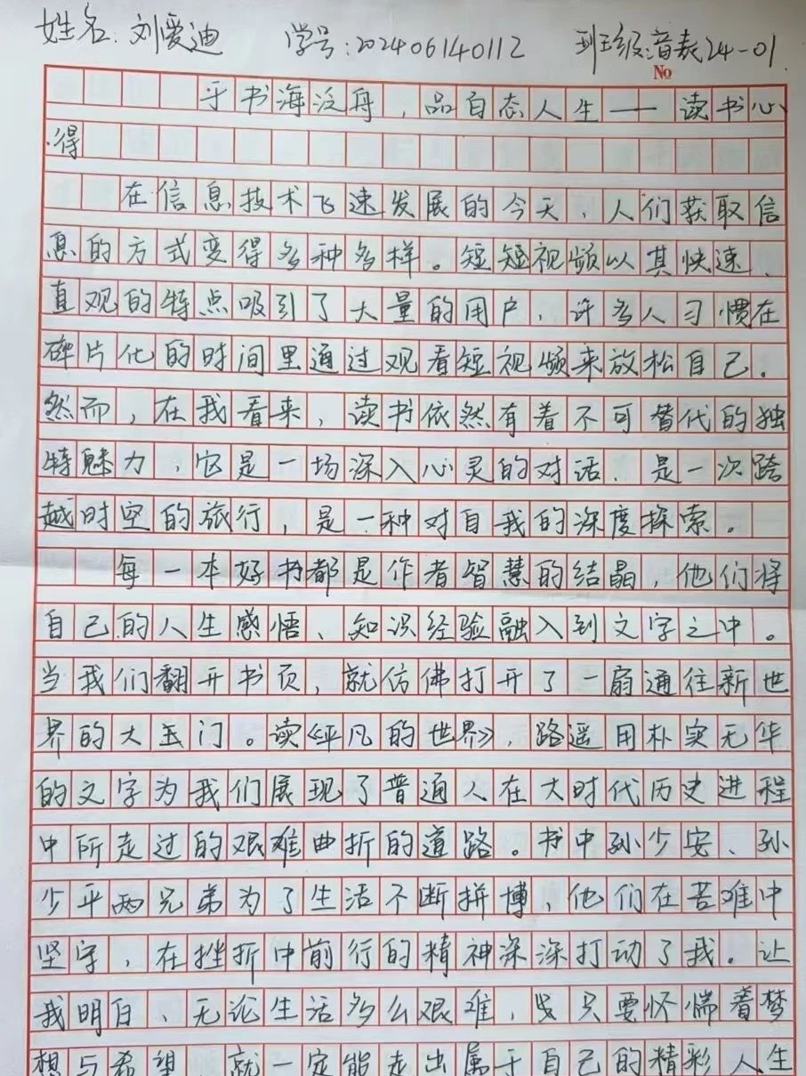 在各班活动现场,班干部们精心筹备,以专业特色为导向设计活动环节。音乐表演专业的同学们将经典著作与艺术表演相结合,李善宇同学通过现场演奏贝多芬奏鸣曲片段,生动诠释了《音乐之流》一书中关于音乐情感表达的深刻见解,让班级同学感受到文字与音符的完美共鸣。学前教育专业的班级则开展了别具特色的“绘本共读”活动,赵以诺同学手持《小王子》绘本,配合自制的立体书道具,向同学们讲述书中关于爱与责任的哲理,并探讨如何将这些教育理念融入未来的幼儿教学实践。