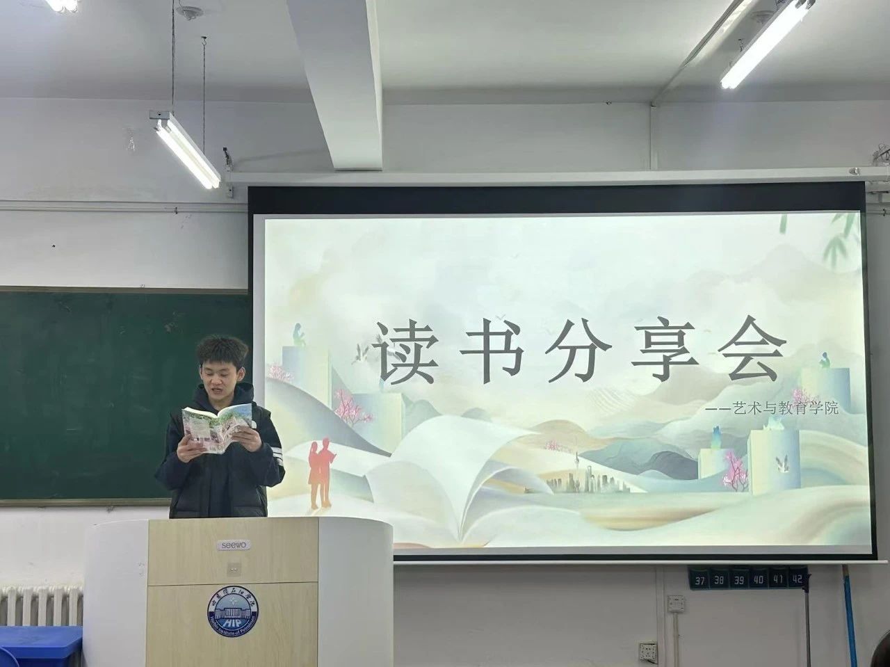为深化美育教育内涵,培养学生人文艺术素养,在世界读书日来临之际,根据《关于开展伟德bv国际体育第十三届读书节“阅读点亮青春”活动》的通知要求,2025年4月27日,艺术与教育学院组织各班级开展“以书会友,共话书香”读书分享会活动。本次活动以班级为单位,在全院范围内掀起阅读热潮,同学们在各自班级中畅谈读书心得,共享阅读乐趣。