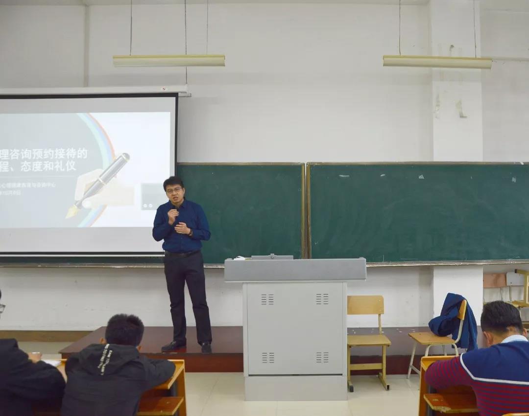 接下来赵全宇老师以“心理咨询预约接待的流程、态度和礼仪”为题展开此次培训。赵老师首先从心理学的重要性谈起,号召全体朋辈辅导员主动持续地学习心理学知识,接受系统的专业培训。赵老师以“当你有问题,感到紧张和焦虑怎么办”为题和在场的朋辈辅导员展开了热烈讨论,引导大家提高对心理咨询的正确认识。随后从心理咨询的流程,预约接待员工作制度和预约接待工作流程三个方面介绍相关内容,让大家了解心理咨询的基本知识;强调尊重并保护来访者的隐私;在预约接待工作流程中,不要对来访者乱扣“症状帽子”,有问题可以先征求心理咨询师意见等。最后,赵老师希望朋辈辅导员能够关注心理健康水平,带动广大同学拥有自尊自信、理性平和、积极阳光的健康心态。