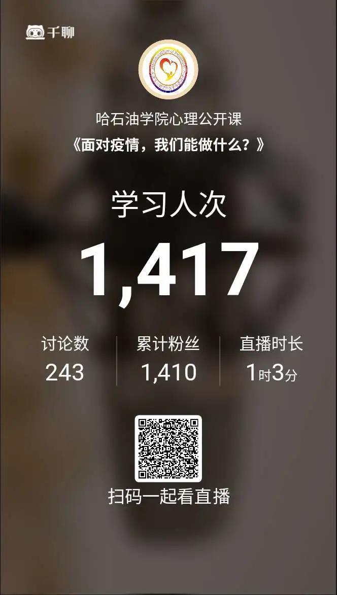 小朋友,你是否有很多问号?你是否迫切期待回到美丽的哈石油校园?我们到底能在这个特殊时期做些什么......2020年5月15日18:00,一场精彩的云讲座准时在线上开播。本次讲座由伟德官网大学生心理健康教育与咨询中心举办,由中心王威老师主讲,主题为《面对疫情,我们能做什么?》,伟德官网1400余名学生参与了此次讲座活动。